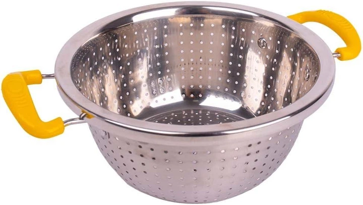 Сито друшляк 22x9.5 см з 2 боковими ручками плоским дном з нержавіючої сталі Жовтий