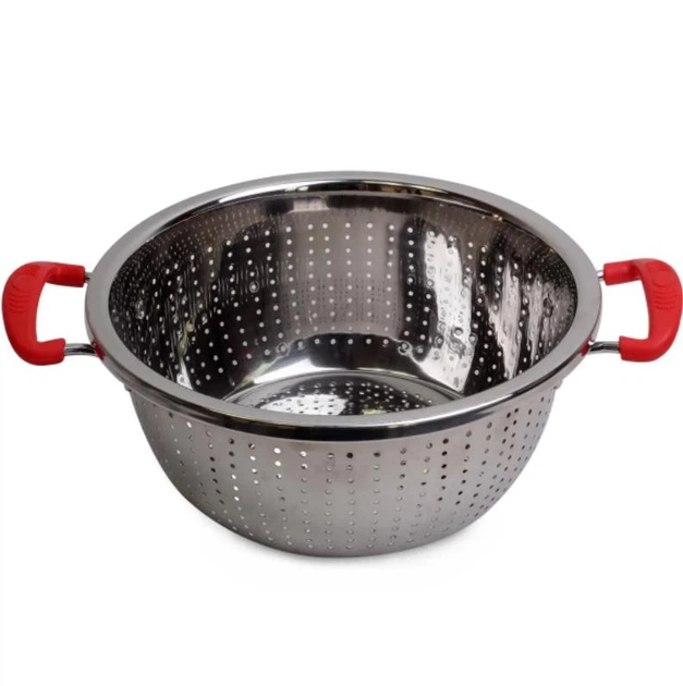 Сито друшляк 22x9.5 см з 2 боковими ручками плоским дном з нержавіючої сталі Червоний
