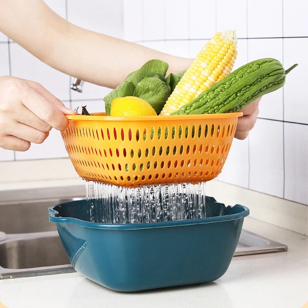 Друшляк пластиковий з мискою 25см, кухонний набір для миття овочів та фруктів