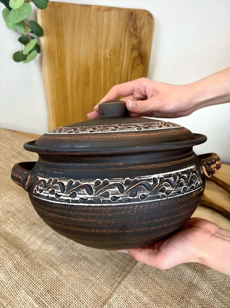 Шашличниця 3.5 літра керамічна (глиняна) різьблена Декор