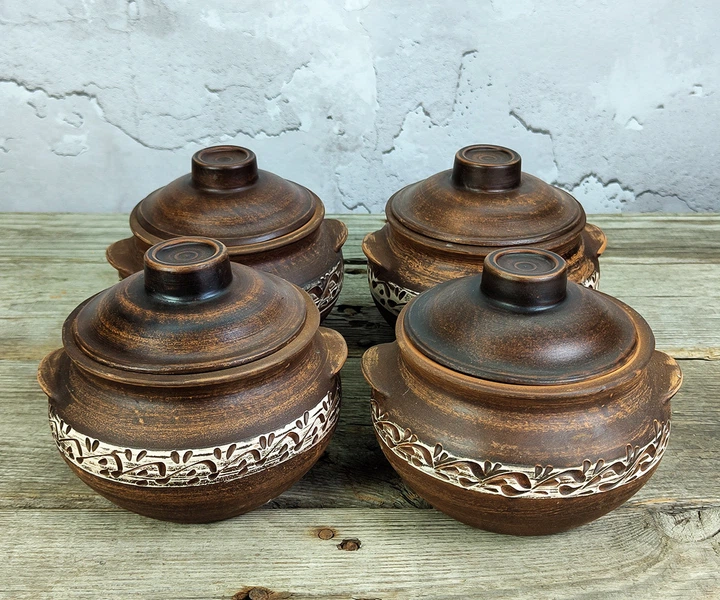 Горщики для запікання 4 шт з червоної кераміки ангоб 600 мл