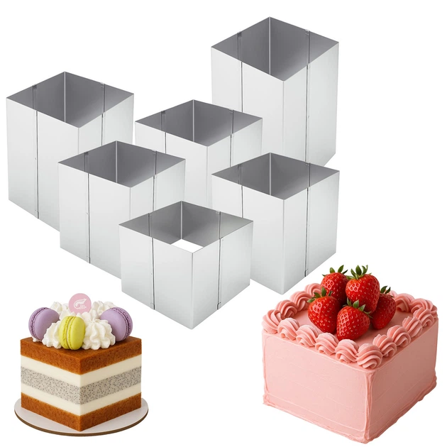 Набір із 6 розсувних квадратних форм для випікання та збирання тортів (квадрат для торта) 15-28 см різної висоти