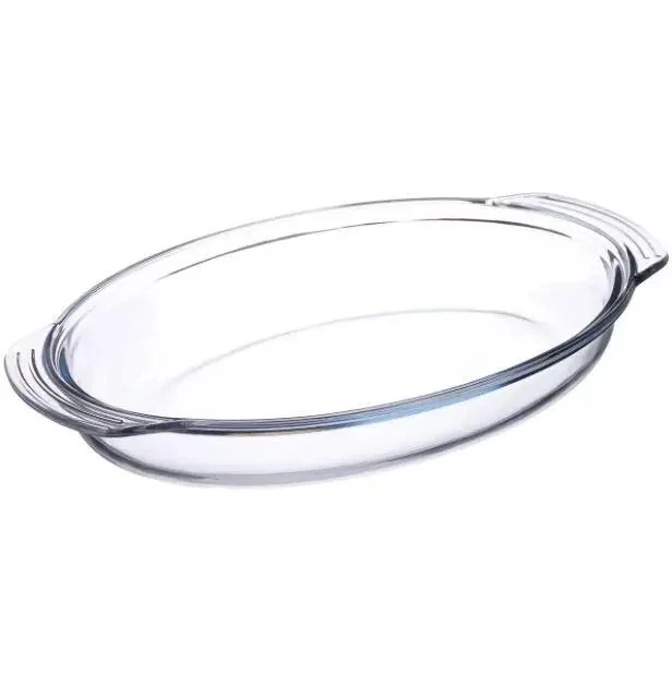 Форма скляна жаростійка для запікання, тушкування 1,7 л. овальна з ручками, Прозорий