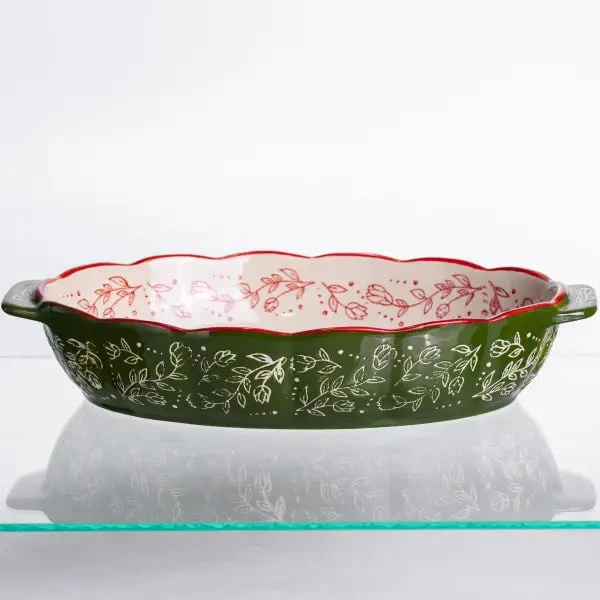 Форма керамічна Kamille для запікання 2.4 л (41*20*6 см) прямокутна з ротанга кошиком (KM-6303)