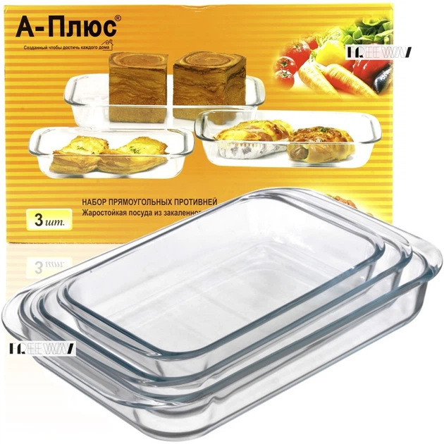 Противні для запікання A-Plus Скляні Жароміцні прямокутні 3 шт ( 1493 )
