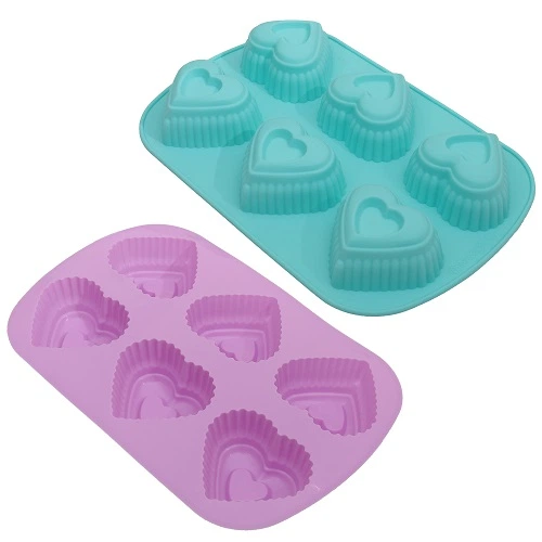 Форма силікон для кексів "Серце" 6шт/л 25.5*17*4см
