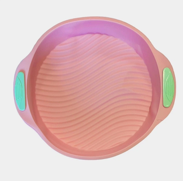 Силіконова форма для випічки 24x26x4,5 см кругла з рифленим дном рожева