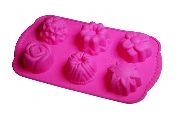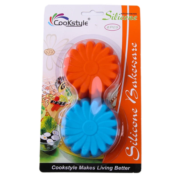 НАБІР 6 шт. СИЛІКОНОВИХ ФОРМ ДЛЯ ВИПІЧКИ КЕКСІВ "КВІТИ" 6.5 см Помаранчевий, блакитиий