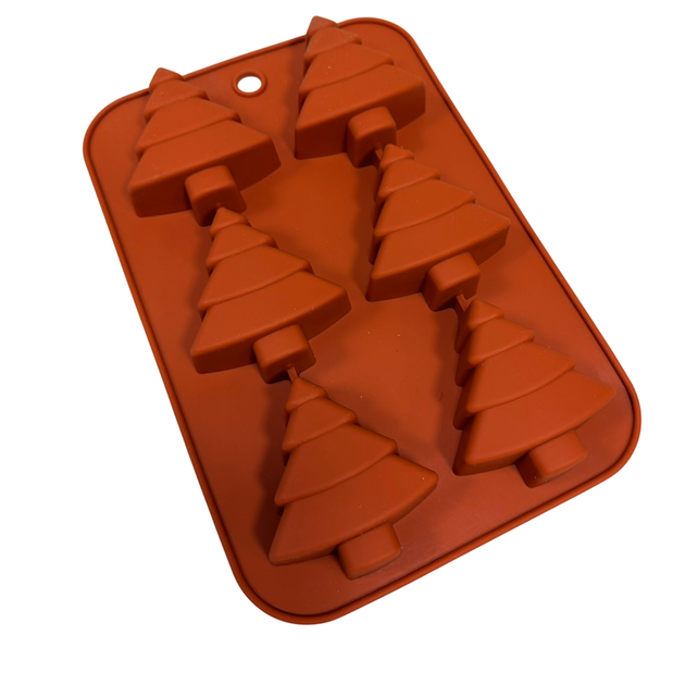 Силіконова форма для випікання кексів на 6 осередків Ялинка 25,5х17х2,5 см Stenson MH-3008 теракотова