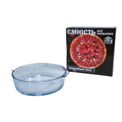 Ємність для запікання 1300мл d21*6см кругла з ручками жароміцне скло 50014-01 S&T