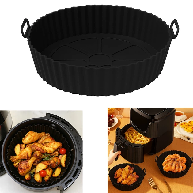 Кругла силіконова форма для аерогриля, духовки та мультипечі 20х20 см Чорний