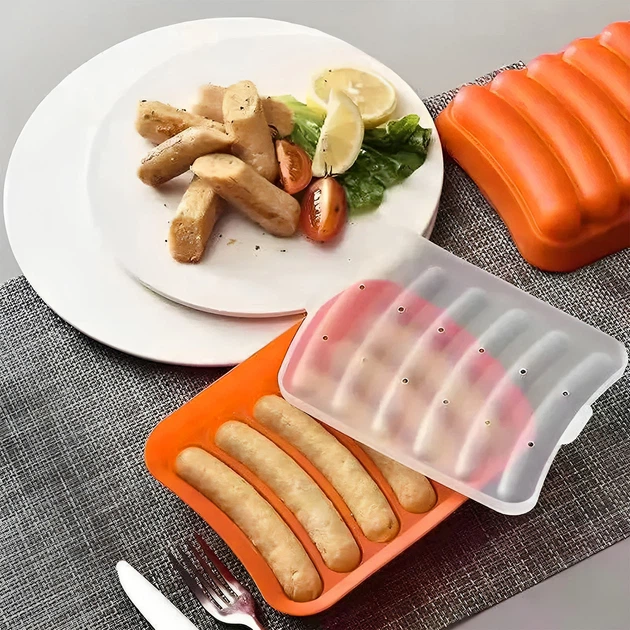 Форма для запікання випічки силіконова домашніх хот-догів, сосисок, ковбасок, кебаба кебабниця Жовтогаряча