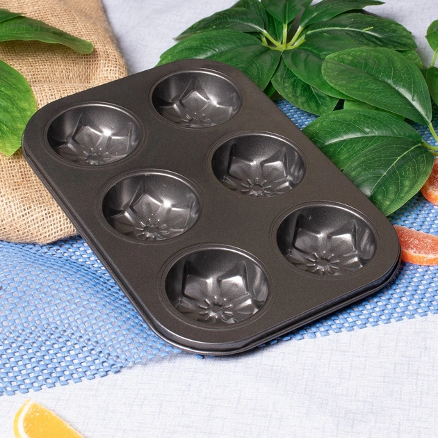 Форма для випічки кексів і мафінів на 6 комірок з антипригарним покриттям "Квіти №2" 26.5х18.5х2.8 см