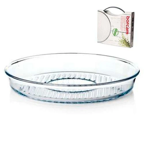 Деко для запікання 2,4л кругле з ручками жароміцне скло 6496 Interos