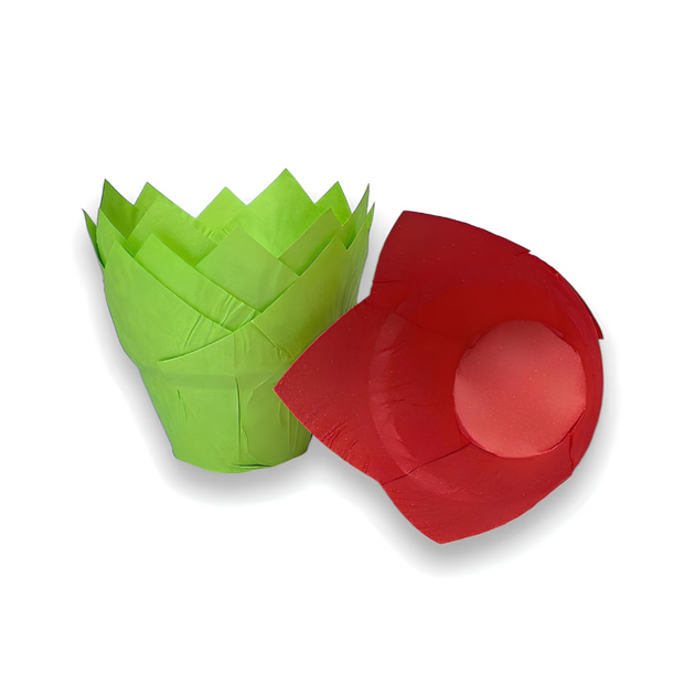 Паперова форма Тюльпан з бортом для мафінів та кексів Good Baking 5085 мм мікс зеленого і червоного 100 шт