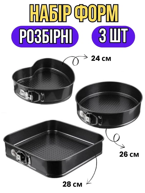 Набір фігурних роз’ємних форм для випікання Unique 3 шт: кругла, квадратна та у формі серця, металеві з антипригарним покрит