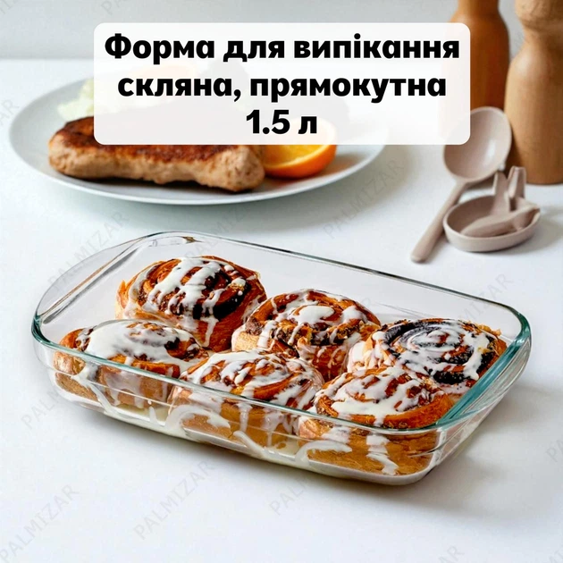 Форма для запікання з жаростійкого скла, об'єм 1.5 л, розмір 29.517.5 см, прямокутна, прозора
