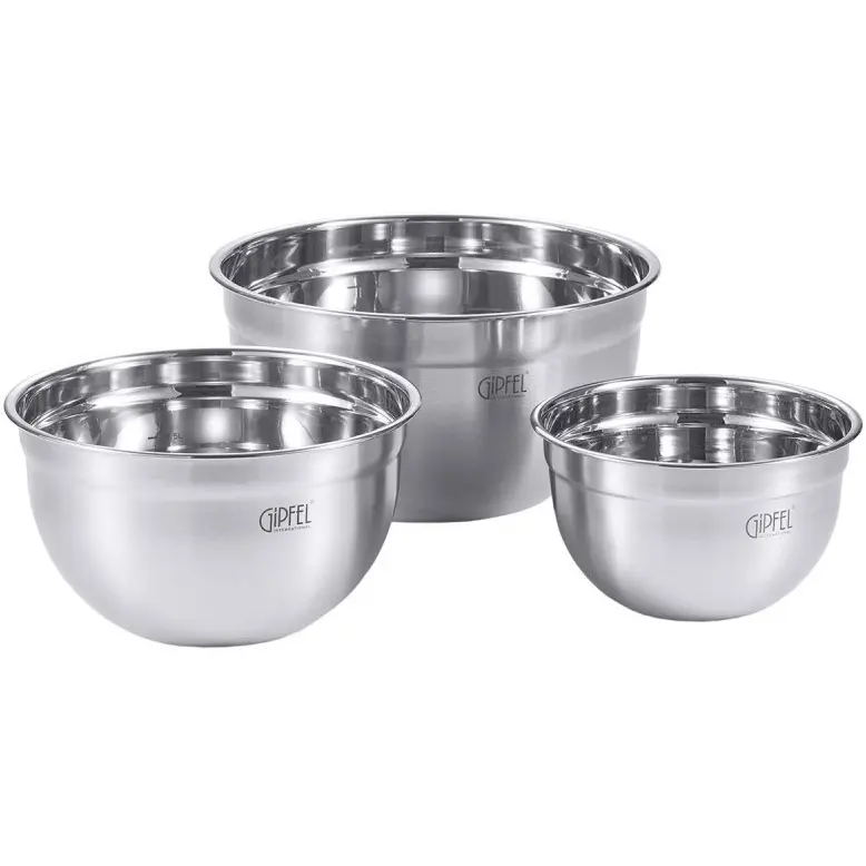 Ключові особливості У комплекті 3 чаші для змішування для випікання та приготування їжі Миски укладаються разом, коли не використовуються Наливний носик допомагає зменшити ймовірність пролиття Можна мити в посудомийній машині для легкого очищення Набір мисок для змішування KitchenAid Universal Цей набір з 3 штук включає одну миску об'ємом 2,4 л, одну миску об'ємом 3,3 л та одну миску об'ємом
