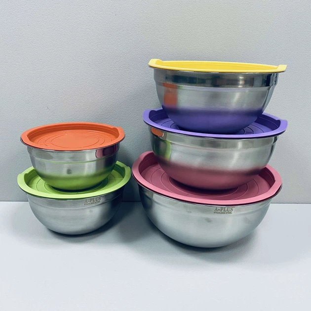 Набір мисок 5 шт із нержавіючої сталі з пластиковими кришками А-PLUS 9035