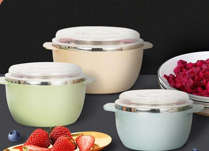 Набір мисок 5 щт А-PLUS 9032-5 із нержавіючої сталі з пластиковими кришками