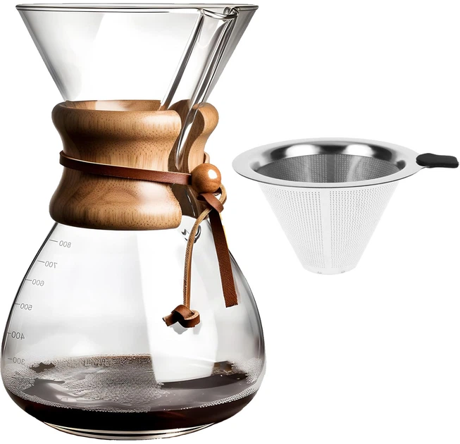 Кемекс для кави 800 мл з металевим фільтром пуровером для альтернативного заварювання (СH8WF)