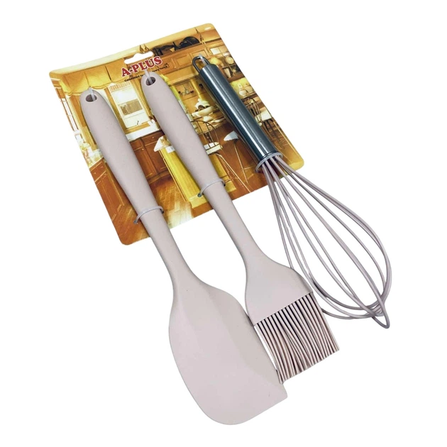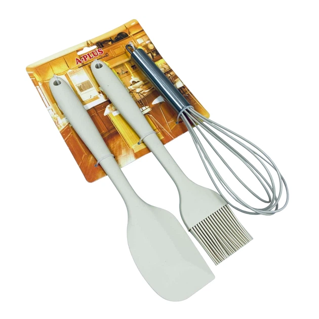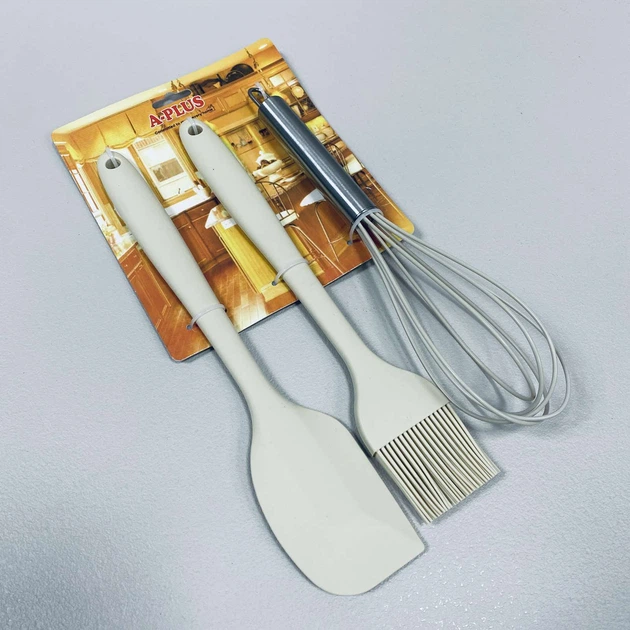 Набір силіконових аксесуарів ( лопатка, вінчик, пензлик) A-Plus 1903 молочний