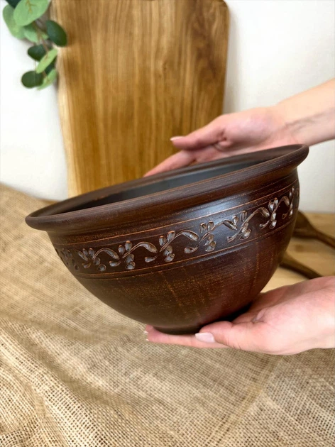 Макітра 2,5 літри керамічна (глиняна) різьблена декор