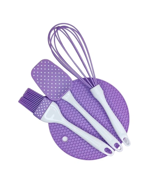 Силіконовий набір приладдя фіолетовий А-Плюс 1956 (лопатка, віночок, кисть, килимок)