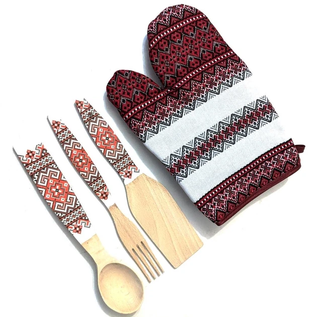 Рукавиця кухонна з вишивкою та комплектом кухонного приладдя