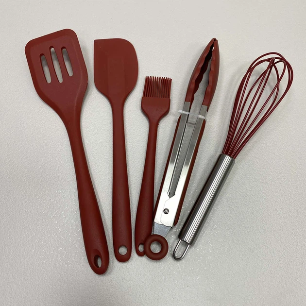 Набір кухонного приладдя силіконовий 5 предметів A-PLUS 1962 бордовий