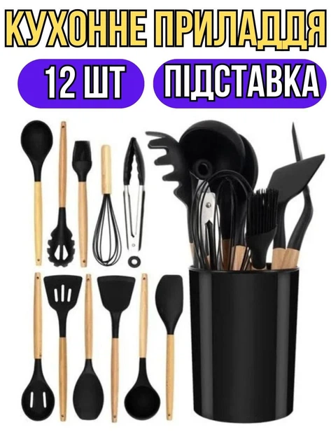 Набір кухонного приладдя Kitchen Set з 12 предметів: силіконові кухонні аксесуари, стійкі до високих температур, універсальн