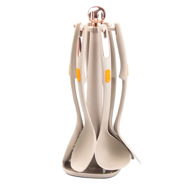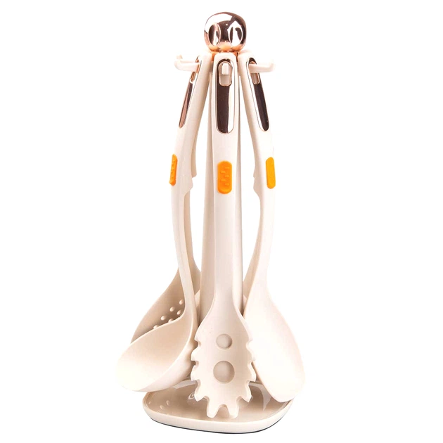 Набір кухонного приладдя на підставці 6 шт бежевий силіконові інструменти для готування та сервірування (523307)