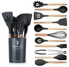 Набір кухонного силіконового приладдя Чорний 12 предметов Kitchen&Dining