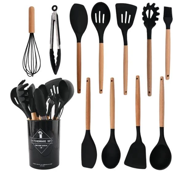 Силіконовий набір із дерев'яним ручним кухонним приладдям 12 шт у наборі (24)