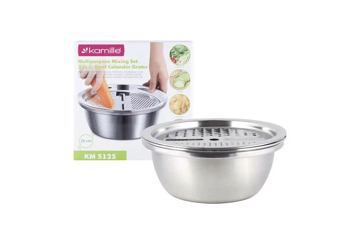 Набор мисок нержавеющих Kamille 260мм миска x дуршлаг x крышка-терка