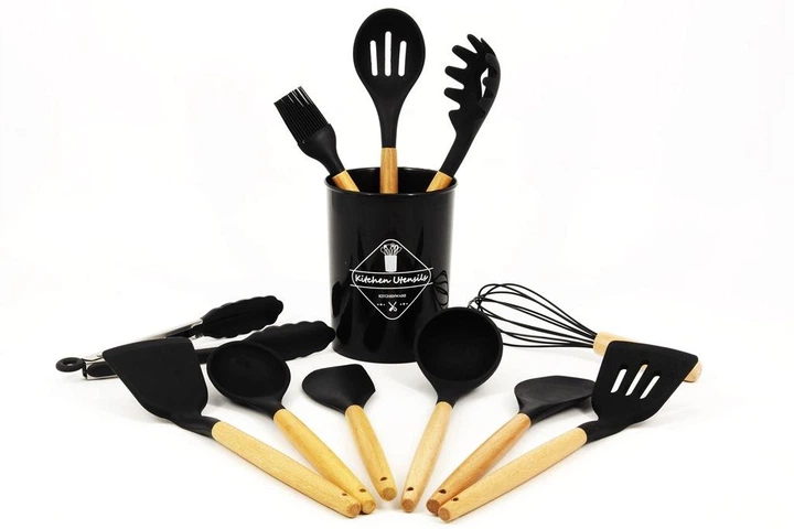 Кухонний набір ZP, кухонне начиння, 12 предметів, силіконовий, Чорний