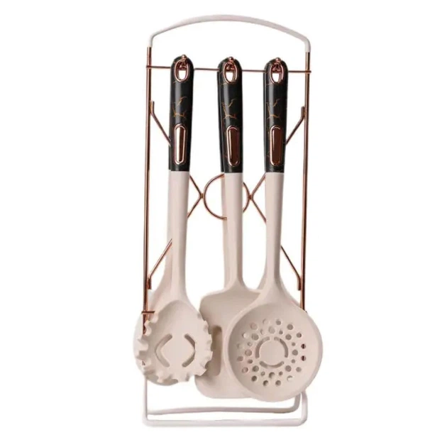 Набір кухонного приладдя на підставці 6 штук кухонні аксесуари Бежевий із чорною ручкою