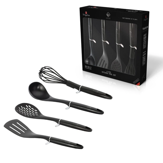 Набір кухонного приладдя 4 предмети Berlinger Haus Black Silver Collection половник, шумівка, віночок та лопатка з прорізами