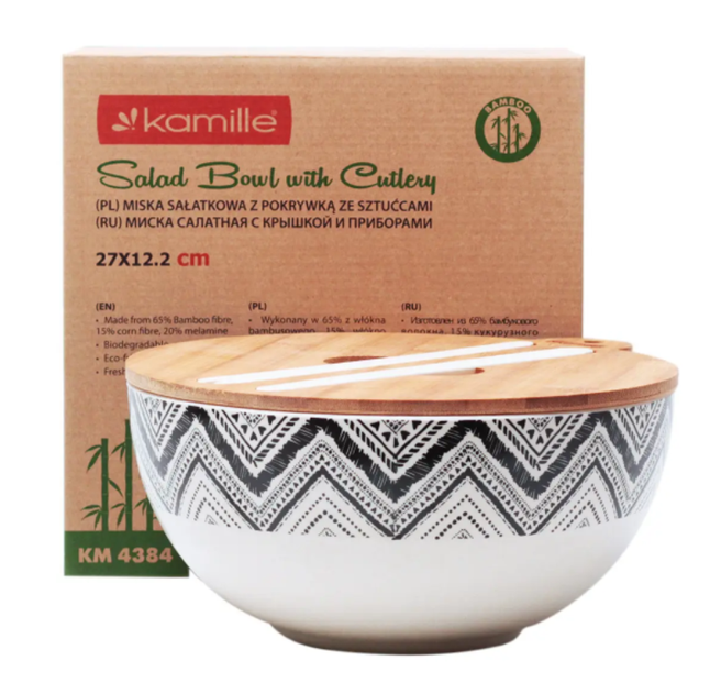 Миска Kamille з бамбукового волокна 27*12.2 см з бамбуковою кришкою та приладами (візерунок: орнамент, квіти)