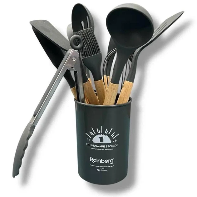 Набір кухонного приладдя 19 предметів ZP-0102 з подвійною підставкою, дошкою та набором ножів, силіконовий, чорний
