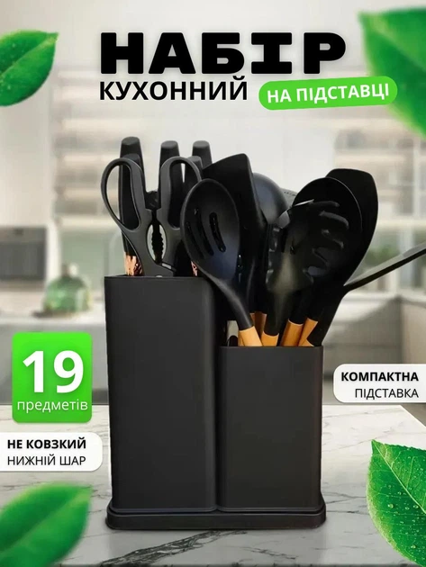 Набір кухонного приладдя з ножами та підставкою, 19 предметів