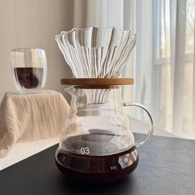 Пуровер 800 мл скляний заварник для кави