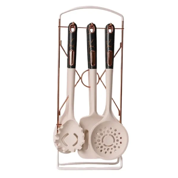 Набір кухонного приладдя на підставці 6 штук кухонні аксесуари Бежевий із чорною ручкою YRUR4