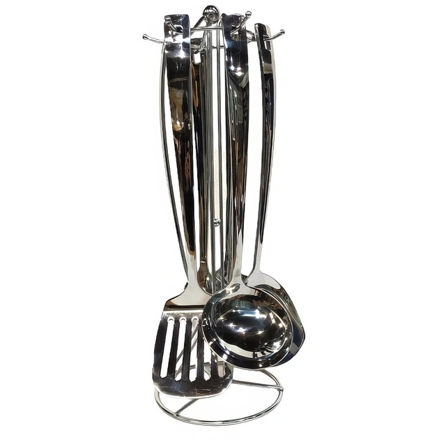 Набір кухонного приладдя 433-5-D077 7 предметів з хромованої сталі на підставці Сріблястий (127-14-16755)