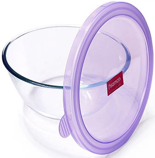 Миска Fisman скляна 2100мл із кришкою для зберігання продуктів прозора ємність для кухні (563749)
