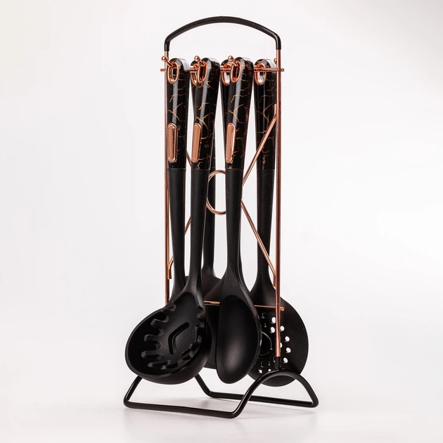 Набір кухонного приладдя на підставці 6 штук кухонні аксесуари Чорний під мармур YRUR5