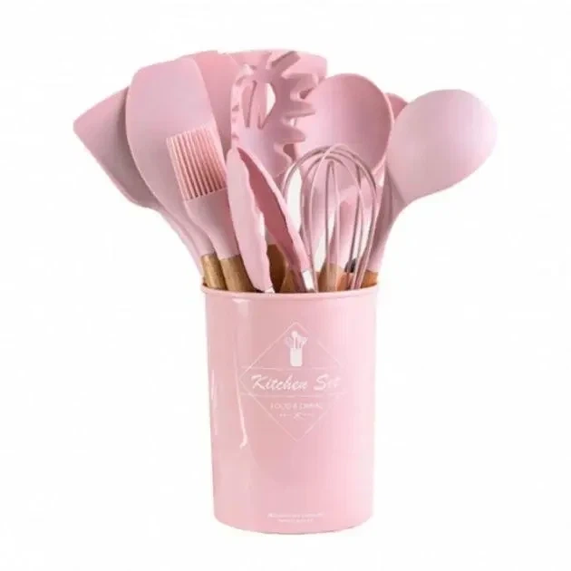 Набір кухонного приладдя силікон 12 предметів Kitchen Set Кухонний набір в склянці RD-1204 Рожевий