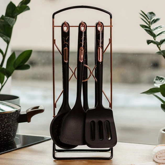 Набір кухонного приладдя на підставці 6 штук кухонні аксесуари Чорний під мармур