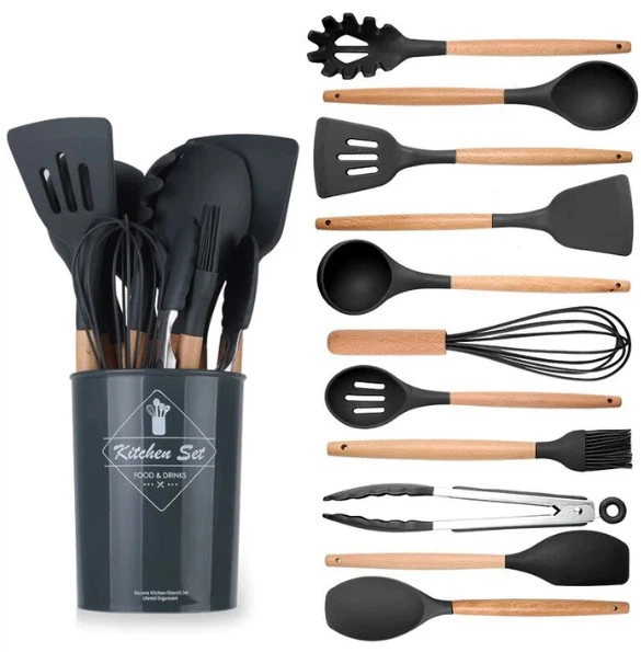 Набір кухонних предметів Silicone kitchen utensils set 12 предметів Чорний