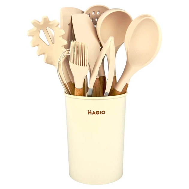 Набір Силіконових Кухонних Лопаток Magio Набір Ложок 11 Предметів Бежевий (293159)